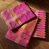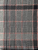 “Colour and weave” techniques use combinations of dark / light yarns in both warp and weft. These interact in unexpected ways with the underlying weave structure, creating beautiful and unique patterns.